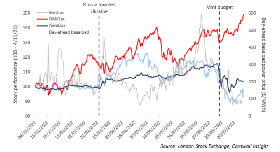 The energy specialist compared the share price performance of large electricity generators and listed funds to oil and gas companies over the past 12 months – which best reflect expectations for profits from investors.